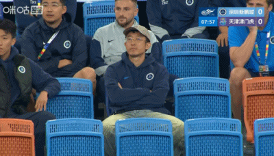 镜头给到因驱逐 停赛的姜至鹏。↓