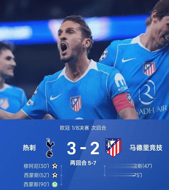 25/26比联赛季欧洲冠军杯1/8冠军杯次回合,马德里竞技客场挑战2-3不敌热刺,累计锦标赛结果7-5被淘汰对手进入下一轮八强。赛后主帅西蒙尼的发言,透着久经硬仗的沉稳,还有直面强敌的十足底气。